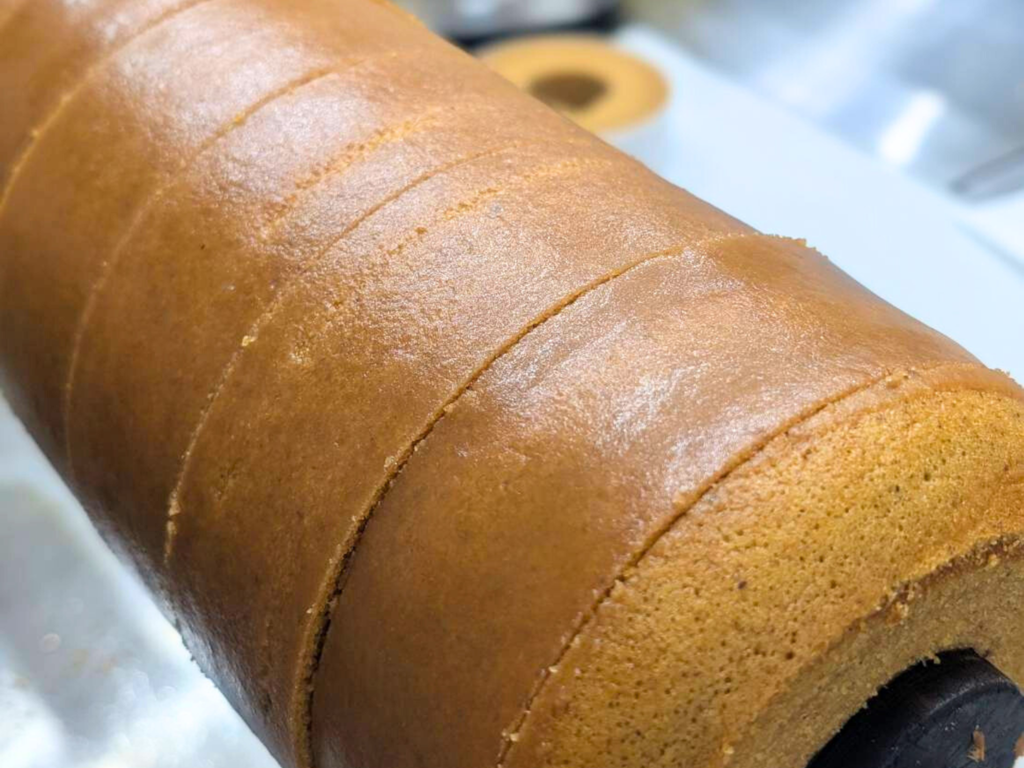 経験豊富な職人が一層一層、焼き加減を見極めて丁寧に焼き重ねています。この手間ひまが、見た目の美しさと均一な「しっとり食感」を生み出しています。