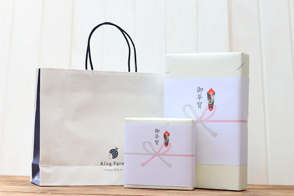 贈り物をより特別なものにするために、キングファームでは専用ラッピングや熨斗(のし)掛けを無料で承っております。